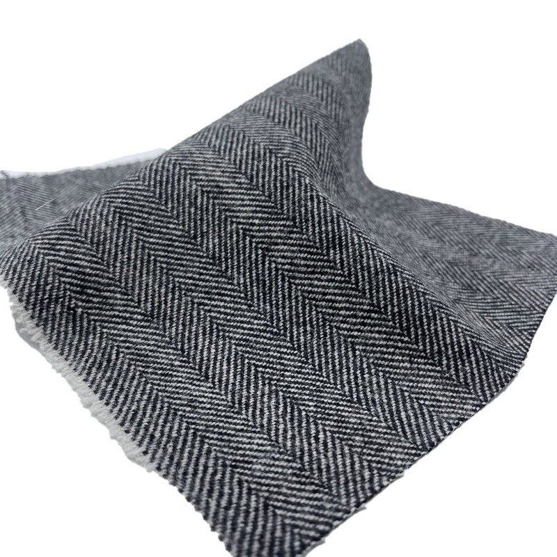 Ova tkanina, označena kao artikal ZZH24020, je jacquard tkani tekstil sastavljen od 50% vune i 50% poliestera. S masom po jedinici površine od 460 g/m, materijal predstavlja konstrukciju srednje težine. Površina ima klasični uzorak riblje kosti u crnoj i bijeloj boji, stvoren postupkom jacquard tkanja. Kombinacija vune i poliesterskih vlakana utječe na taktilna svojstva tkanine i stabilnost dimenzija. Tkana struktura i mješavina vlakana doprinose otpornosti tkanine na draženje i gužvanje. Ove tehničke specifikacije čine ovu jacquard tkaninu primjenjivom za krojenu odjeću gdje je potrebna definicija uzorka i strukturni integritet
