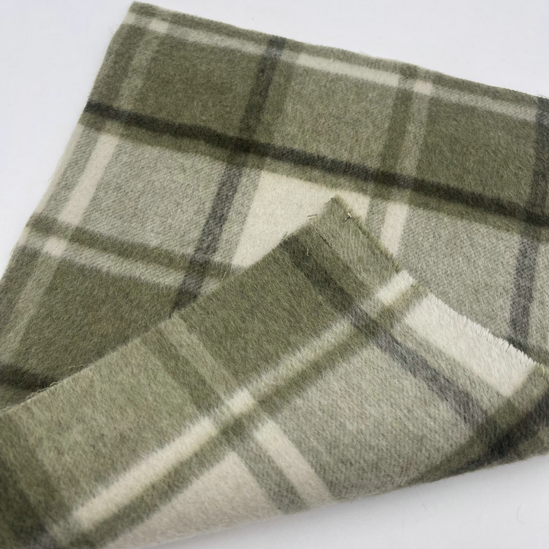 Ova tkanina, označena kao artikal ZZH25001, je gusta tkana tkanina koja se sastoji od 30% vune i 70% ostalih vlakana. S masom po jedinici površine od 900 g/m, materijal pokazuje znatnu gustoću i težinu. Površina ima zeleni karirani uzorak s efektom sjene stvorenim posebnim tehnikama tkanja. Ova metoda konstrukcije stvara slojevitu vizualnu dubinu unutar mrežne formacije. Uključivanje vunenih vlakana u mješavinu utječe na svojstva termoregulacije tkanine. Ove tehničke specifikacije rezultiraju teškom tkanom tkaninom prikladnom za strukturiranu odjeću gdje je potrebna izražena tekstura i značajna prisutnost.