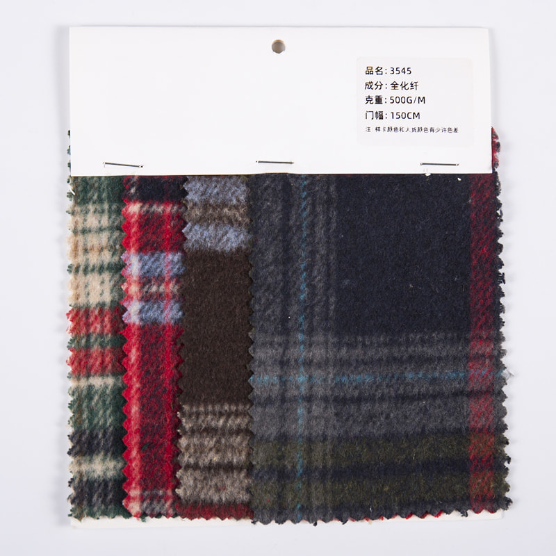 Brush Plaid Check Jacquard Long Hair Tweed Fabric 3545 je visokokvalitetna tkanina pažljivo razvijena i proizvedena na temelju materijala od 100% kemijskih vlakana. Tkanina koristi napredna kemijska vlakna kako bi osigurala izvrsnu izdržljivost, stabilnost, dobru otpornost na gužvanje i postojanost boja, pružajući čvrstu osnovu za odjeću i uređenje doma. Njegova posebnost je da je površina prekrivena slojem finog i ravnomjernog pliša. Zahvaljujući posebnoj obradi, pliš je mekan i elastičan, dajući tkanini izvrsnu toplinu i udobnost. Ovaj dizajn s dugom dlakom ne samo da poboljšava vizualnu razinu tkanine, već i poboljšava njezino taktilno iskustvo, čineći proizvod usklađenijim s visokim zahtjevima modernih potrošača za kvalitetom tkanine. Proces brušenog kariranog jacquarda još je jedan tehnički vrhunac ove tkanine. Preciznom tehnologijom tkanja i jacquard dizajnom, tkanina predstavlja jedinstveni mrežasti uzorak četke. Ovi uzorci imaju glatke linije i razuman raspored. Oni ne samo da zadržavaju grubu teksturu tradicionalnog tvida, već također uključuju moderne modne elemente, čineći tkaninu vizualno privlačnijom. Pun raznolikosti i slojevitosti. Istodobno, primjena jacquard tehnologije također poboljšava trodimenzionalni učinak i prozračnost tkanine, dodatno poboljšavajući iskustvo nošenja. Svojstva materijala tvida također dodaju boju ovoj tkanini. Njegova gruba tekstura i jedinstvena tekstura čine tkaninu vizualno punijom i napetom, što je čini vrlo pogodnom za izradu odjevnih predmeta ili kućanskih predmeta u jesen i zimu.