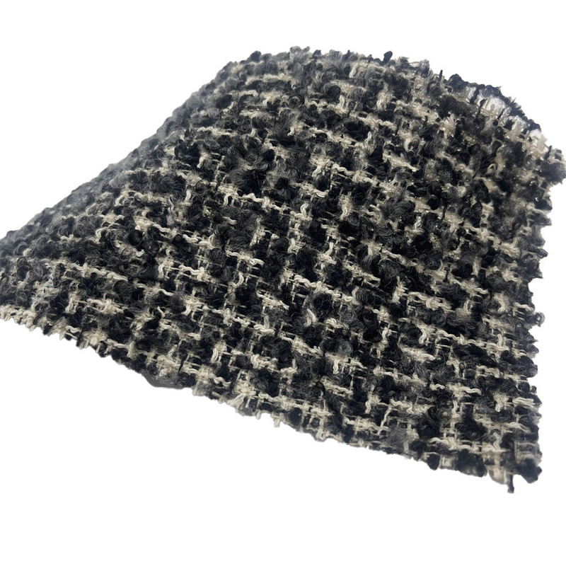 Ova tkanina, označena kao artikl 23515, je tkanina od tvida koja se sastoji od 77% poliestera, 14% pamuka, 4% vune, 4% akrila i 1% najlona. S masom po jedinici površine od 420 g/m2, predstavlja konstrukciju srednje težine. Površina ima reljefni uzorak u kombinaciji s petljastom strukturom pređe, stvarajući teksturirani taktilni efekt. Mješavina više vlakana objedinjuje stabilnost poliestera, upijanje vlage pamuka, prirodni karakter vune, debljinu akrila i ojačanje najlona. Ova kombinacija rezultira tkaninom s površinskom dimenzionalnošću i strukturalnim integritetom. Ove karakteristike ga čine primjenjivim za odjevne predmete koji zahtijevaju i vizualnu teksturu i funkcionalnu trajnost.