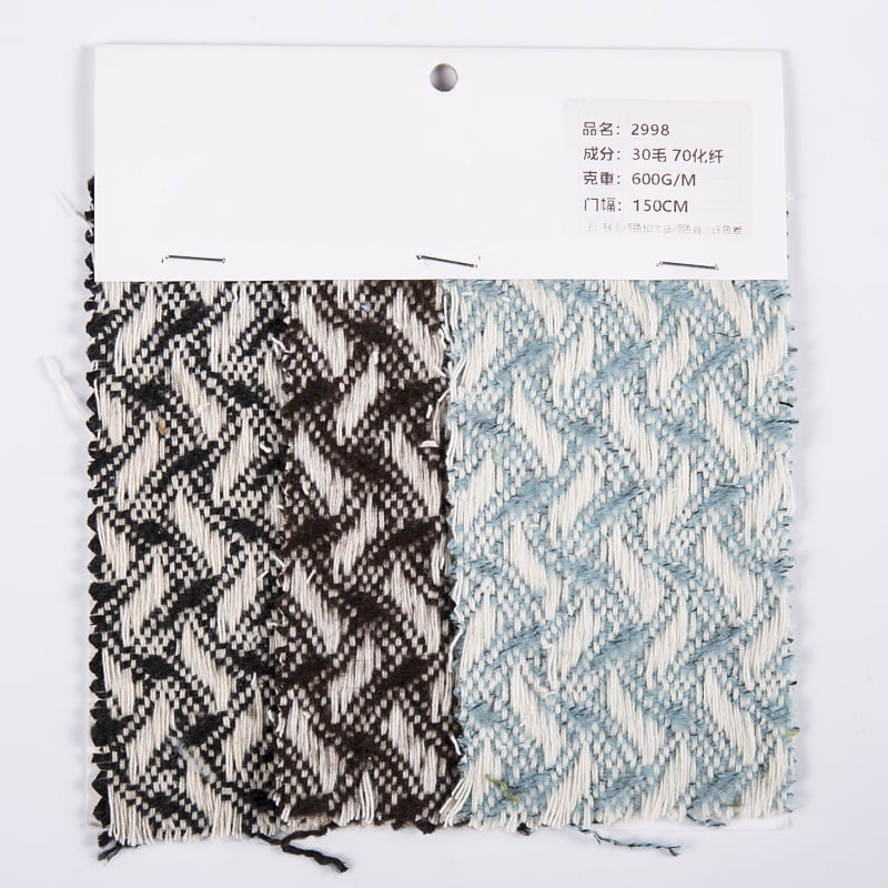 Ova modna vunena tkanina od tvida od kemijskih vlakana za jaknu 2998 pažljivo je odabrana sa znanstvenim omjerom 30% visokokvalitetne vune i 70% kemijskih vlakana visokih performansi, s ciljem da vam donese neviđeno iskustvo nošenja i vizualni užitak. Vuna, prirodni glasnik topline, poznata je po svojoj izvrsnoj toplini i prozračnosti. U ovoj tkanini, 30% udjela vune ne samo da daje jakni prirodnu mekoću, već također osigurava da tijelo može biti toplo i udobno čak iu hladnoj sezoni. Prirodni sjaj i nježna tekstura vune čine da se jakna ističe u svakom detalju, otkrivajući neupadljivu i luksuznu atmosferu. Dodatak 70% visokokvalitetnih kemijskih vlakana savršen je sraz tehnologije i mode. Kemijska vlakna, sa svojim svojstvima otpornosti na habanje, gužvanje i jednostavno održavanje, uvelike poboljšavaju izdržljivost i praktičnost tkanina. To ne samo da znači da će jakna biti svježija i elegantnija u svakodnevnom nošenju, smanjujući brigu oko nje, već također osigurava da će odjeća ostati kao nova dugo vremena, sa svijetlim bojama koje neće izblijediti. Dodatak kemijskih vlakana također pametno uravnotežuje toplinu i lakoću vune, čineći cijelu jaknu toplom, ali modernom, olakšavajući nošenje u raznim prilikama. Ova moderna tkanina sakoa od tvida od vunenih kemijskih vlakana pokazuje genijalnu kombinaciju retro i modernog sa svojim jedinstvenim postupkom tkanja od tvida. Dizajn patchwork teksture ne samo da obogaćuje vizualnu hijerarhiju, već dodaje i ležeran i nesputan modni stav. Bilo da je uparen s ležernim hlačama ili elegantnom suknjom, lako može pokazati osobni šarm i izvanredan ukus osobe koja ga nosi.
