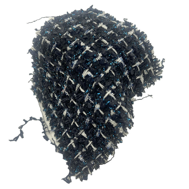 Ova tkanina, označena kao artikl 23511, je karirani tekstil od tvida sastavljen od 86% poliestera i 14% najlona. S masom po jedinici površine od 340 gsm, predstavlja laganu konstrukciju. Tamnoplava baza uključuje plavu metalik pređu unutar kariranog uzorka, stvarajući kontrastni vizualni efekt kroz različite refleksije svjetla. Mješavina poliestera i najlona osigurava dimenzijsku stabilnost i strukturnu postojanost. Uključivanje metalnih elemenata dodaje svjetlosno-interaktivna svojstva tkanoj površini. Ove tehničke specifikacije čine ovu tkaninu od tvida primjenjivom za žensku odjeću gdje je potrebna definirana artikulacija uzorka i suptilna varijacija površine.