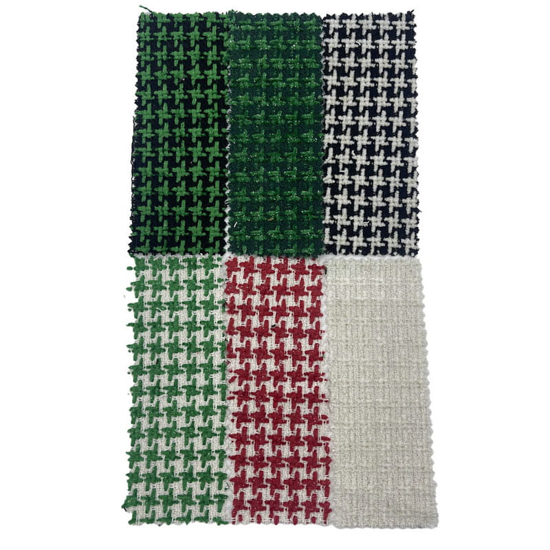 Ova tkanina, označena kao članak 2410, je jacquard tekstil sastavljen od 100% drugih vlakana. S masom po jedinici površine od 550 g/m, predstavlja tešku konstrukciju. Površina kombinira metalnu pređu s tehnikom utiskivanja, stvarajući uzdignuti uzorak koji mijenja i vizualna i taktilna svojstva. Jacquard proces tkanja omogućuje preciznu integraciju metalnih elemenata u dizajn. Ova metoda proizvodnje rezultira tkaninom s definiranom teksturom i kvalitetom reflektiranja svjetla. Navedena težina pridonosi trajnosti i strukturnom integritetu materijala. Ove tehničke karakteristike čine ovu jacquard tkaninu primjenjivom za proizvodnju igračaka gdje su potrebni vizualni interes i otpornost materijala.