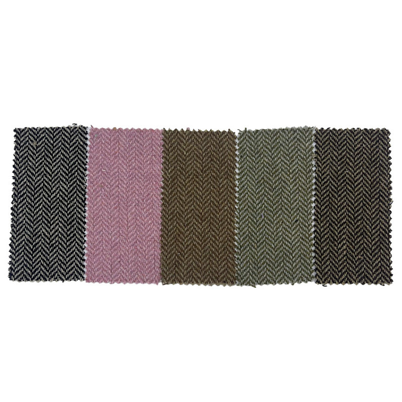 Ova tkanina, označena kao artikl 3532, je jacquard tkanina koja se sastoji od 20% vune i 80% ostalih vlakana. S masom po jedinici površine od 500 g/m predstavlja konstrukciju srednje do teške težine. Ružičasta površina ima uzorak riblje kosti stvoren postupkom jacquard tkanja, koji oblikuje precizne motive u obliku slova V preko tkanine. Ova tehnika proizvodi dosljednu usmjerenu teksturu s definiranim geometrijskim ponavljanjem. Sastav mješavine vune pridonosi toplinskim svojstvima tkanine i zadržavanju oblika. Ove tehničke karakteristike rezultiraju materijalom strukturne gustoće i jasnoće uzorka, što ga čini primjenjivim za hlače gdje su potrebni i vizualna definicija i stabilnost dimenzija.