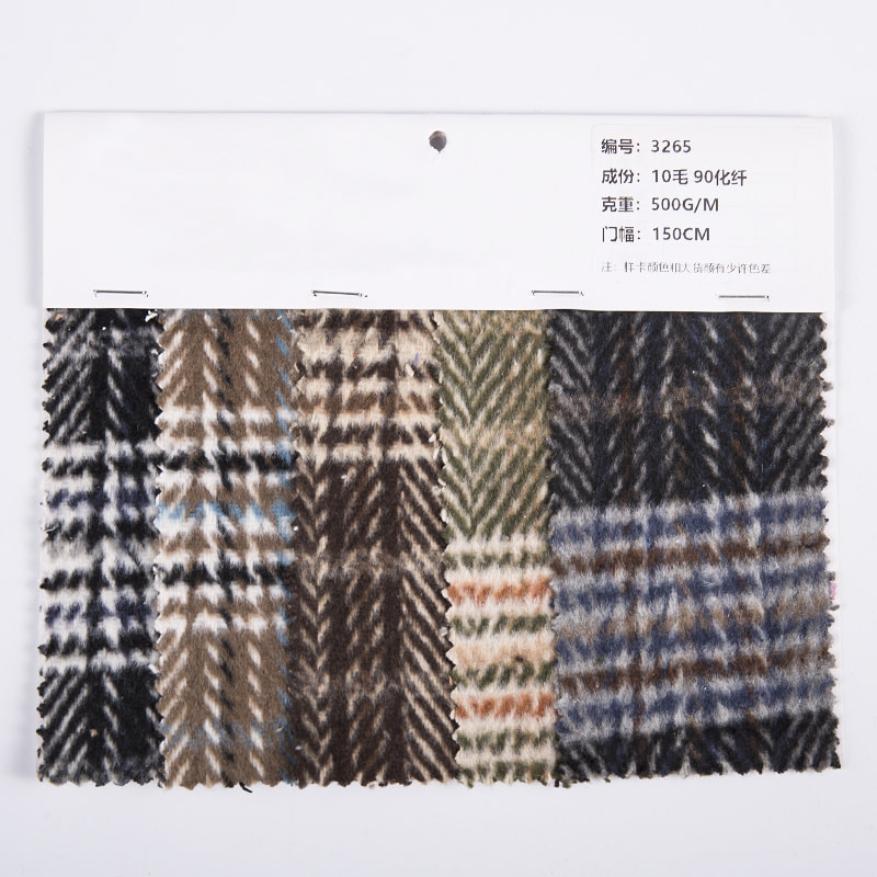 Tartan karirano riblja kost četka vuna kemijska vlakna Tvid tkanina za kapute 3265 upio je bit tradicionalnog škotskog kariranog karira i koristio klasični i slojeviti uzorak riblje kosti kroz kaput. Svaka rešetka nosi počast klasici i inovativnu interpretaciju. Što se tiče tkanine, odabrali smo 10% visokokvalitetne vune kako bismo osigurali topao dodir i prirodnu prozračnost kaputa. U isto vrijeme, 90% visokoučinkovitih materijala od kemijskih vlakana uvelike je poboljšalo otpornost na habanje, otpornost na gužvanje i svojstva tkanine koja se lako održavaju, čineći ovu tkaninu za kaput izdržljivijom i lakšom za održavanje uz zadržavanje elegantnog izgleda. Čak i ako se često nosi, može trajati jednako dugo kao nov. Tekstura tvida dodaje dašak retro i luksuza tkanini ovog kaputa, a proces četkanja u obliku riblje kosti dodatno pojačava trodimenzionalni osjećaj i dodir tkanine, tako da se na svakom dodiru može osjetiti nježna tekstura i topli omotač.