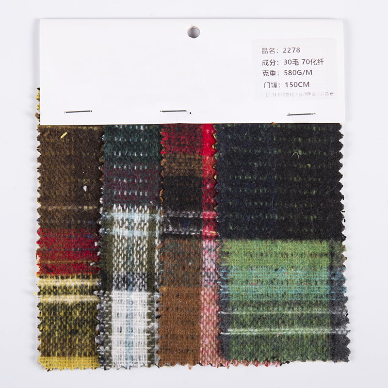 OEM/ODM Višebojni karirani tartan 30% vuna 70% kemijska vlakna Tvid 2278. Imamo više od 20 godina iskustva u industriji i poznati smo po visokokvalitetnim tkaninama i pređama.